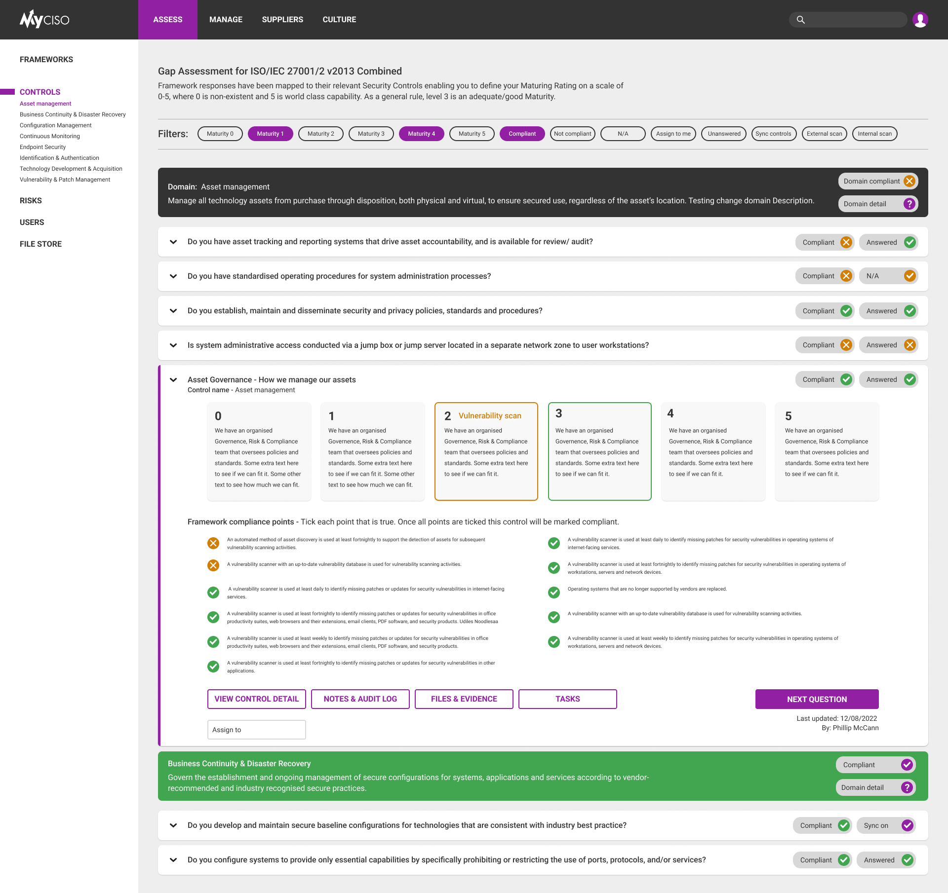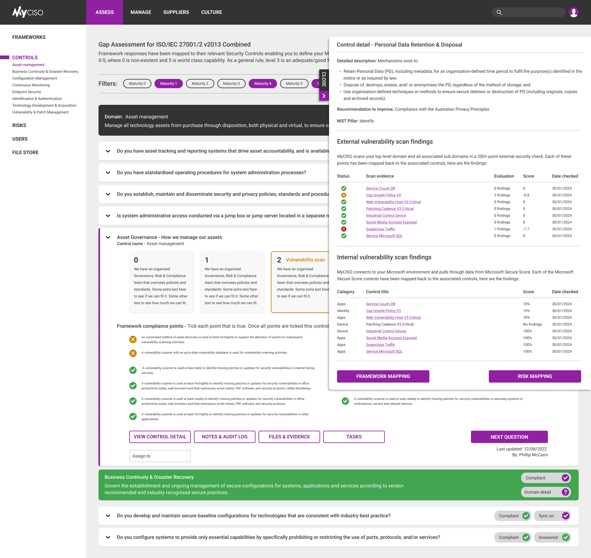 Many organisations assess security maturity through spreadsheets or consultants that deliver point-in-time results. The outcome? High costs, limited insights, and little ability to track real progress over time.