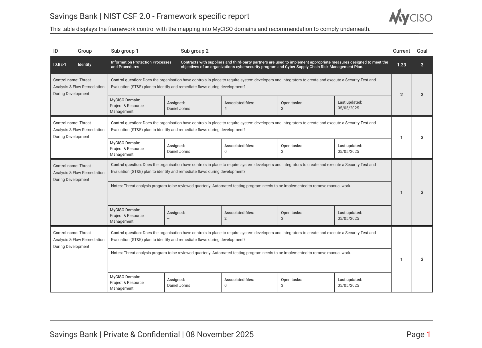 Replace static assessments with a living, dynamic view of your security posture. See how maturity changes over time and track uplift with confidence.